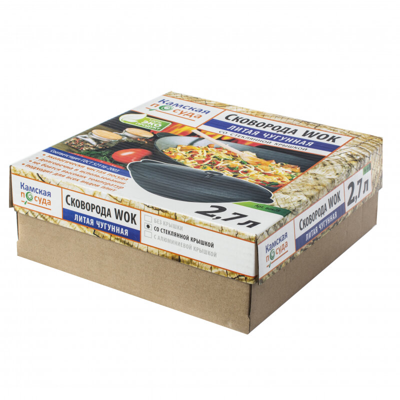 Вок (WOK) Камская посуда вок28 WOK 2 7л чугунный со стеклянной крышкой