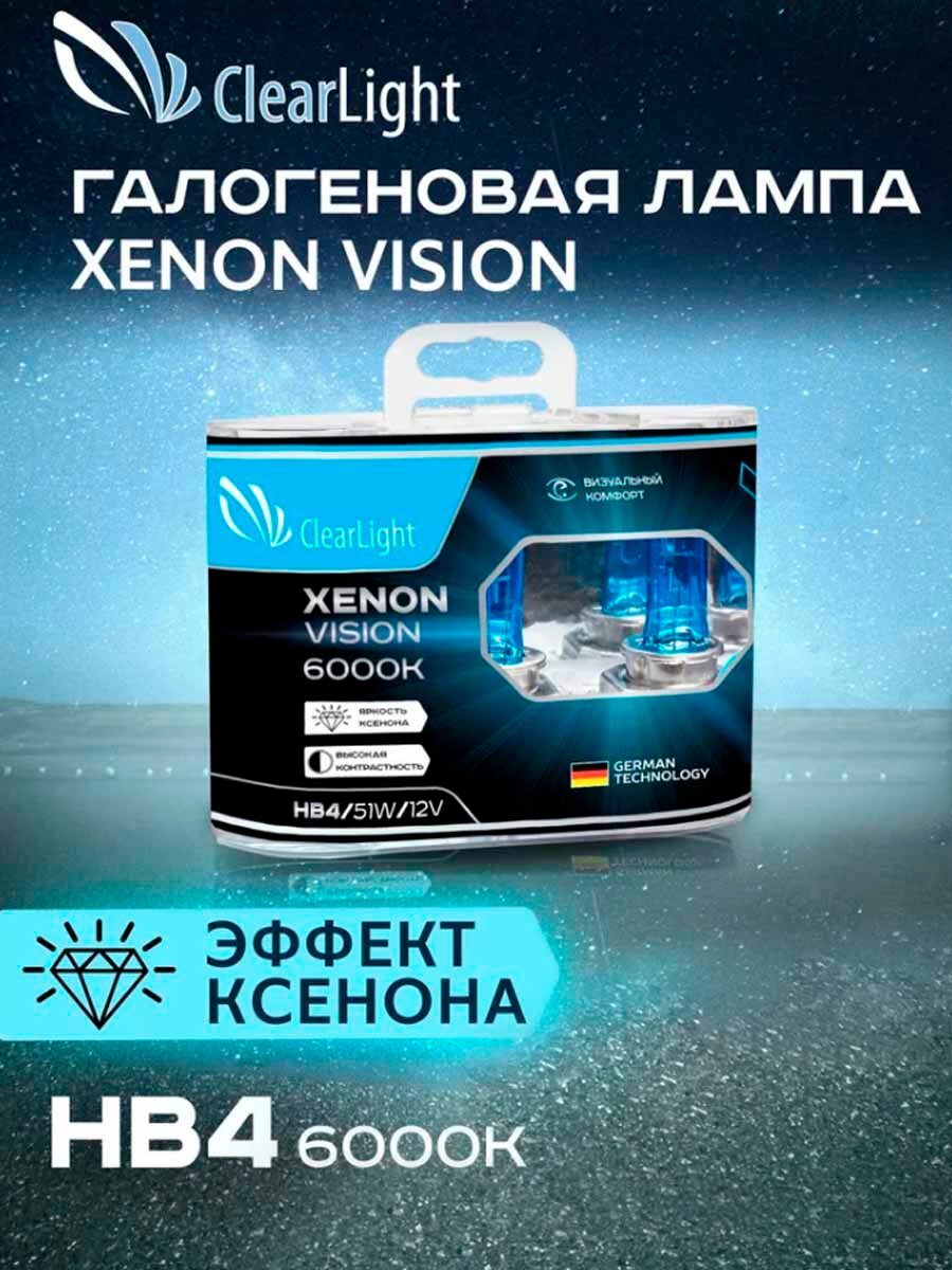 Лампа автомобильная Clearlight XenonVision, HB4, 12 В, 51 Вт, набор 2 шт