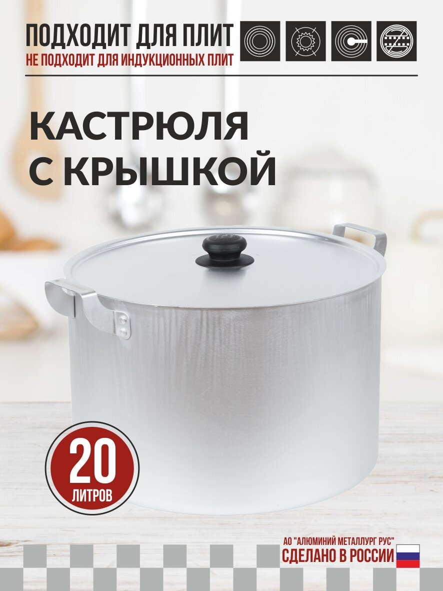 Кастрюля, 20 л, металлическая крышка, "Белая калитва", цвет серый, материал штампованный алюминий