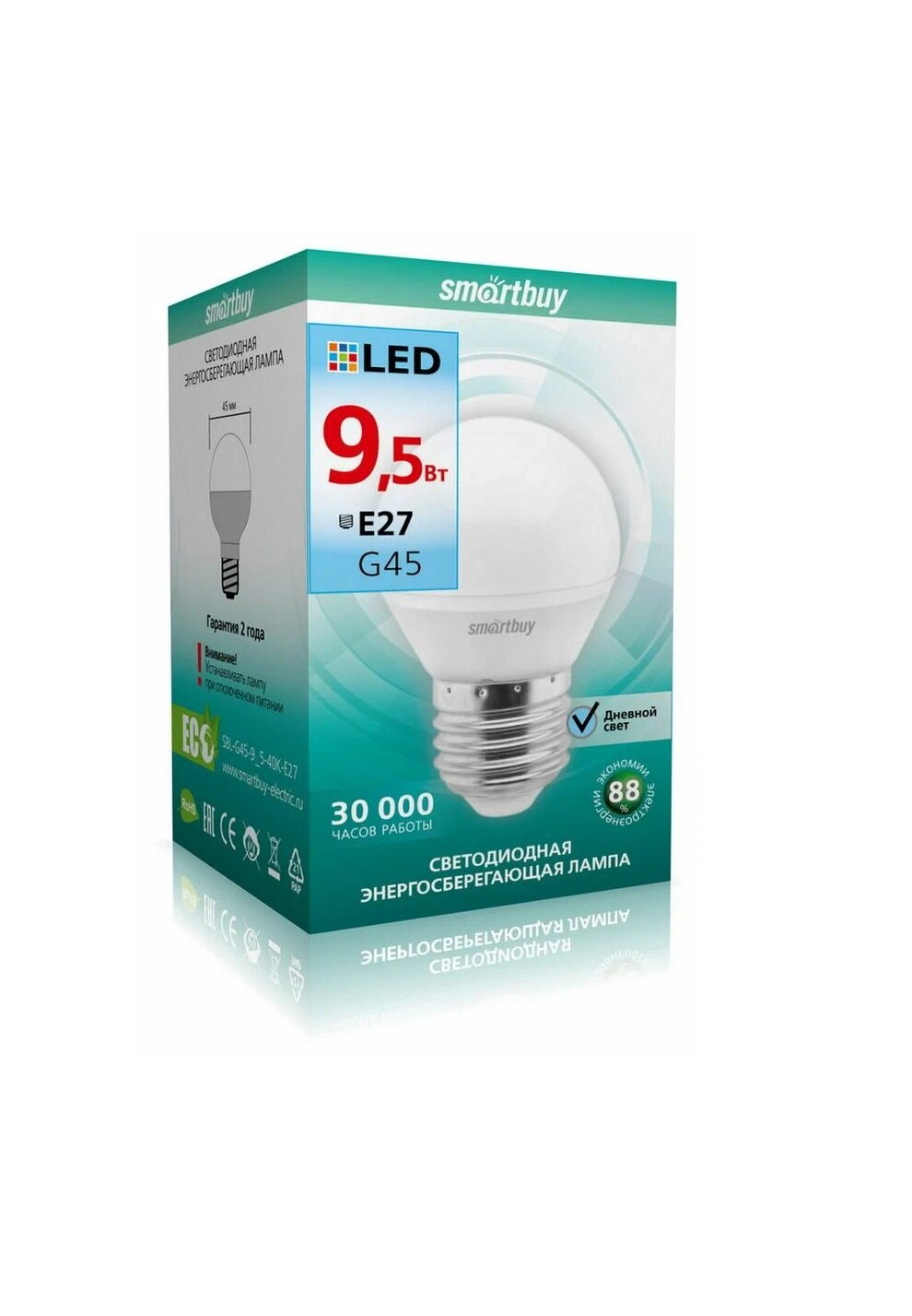 Лампочка SMARTBUY SBL-G45-9_5-40K-E27 9,5 Вт, Е27, белый