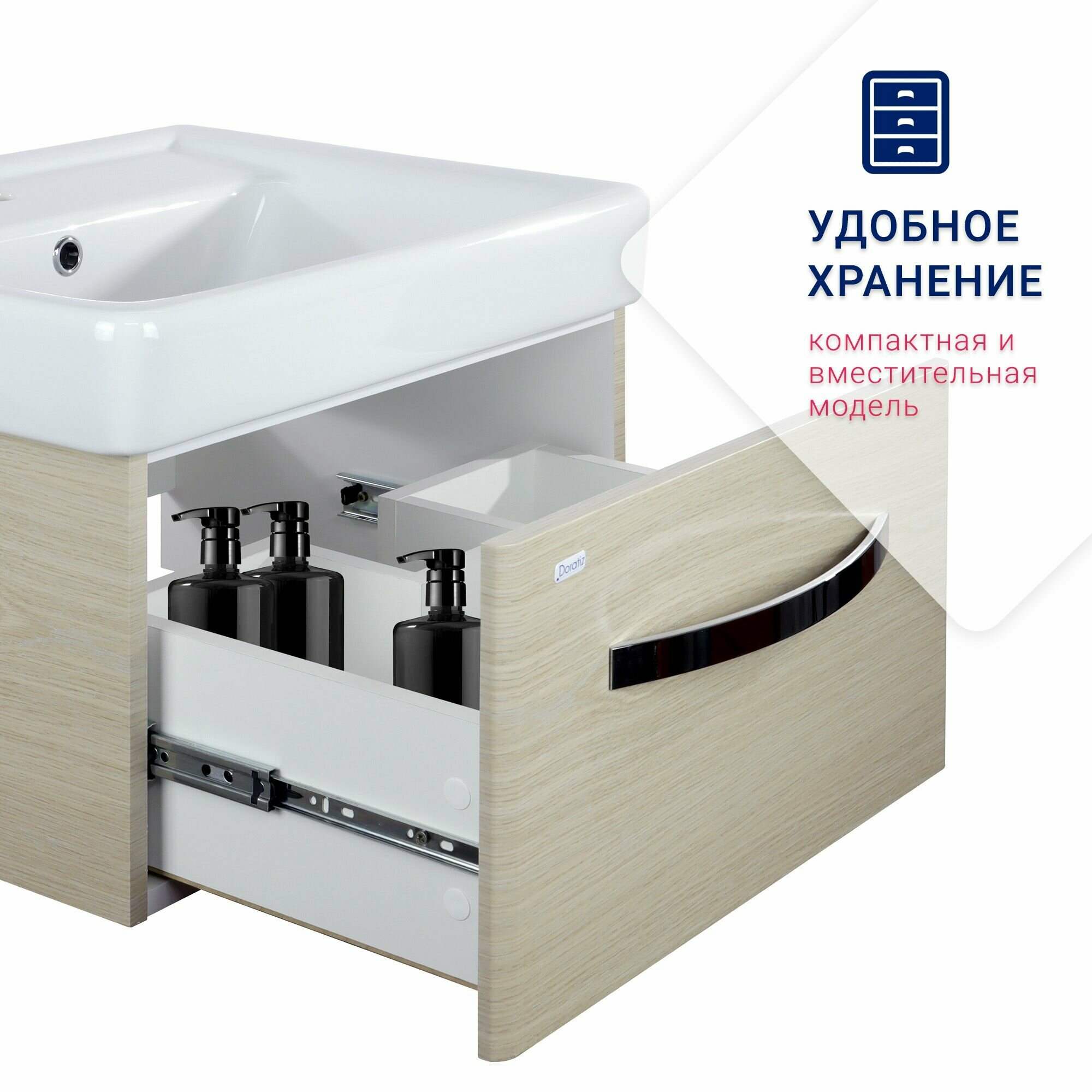 Тумба под раковину в ванную 60, тумба для ванной подвесная 60 серии Коралл под раковину Como 60 DORATIZ, Арт.: 9912.820C интересное: