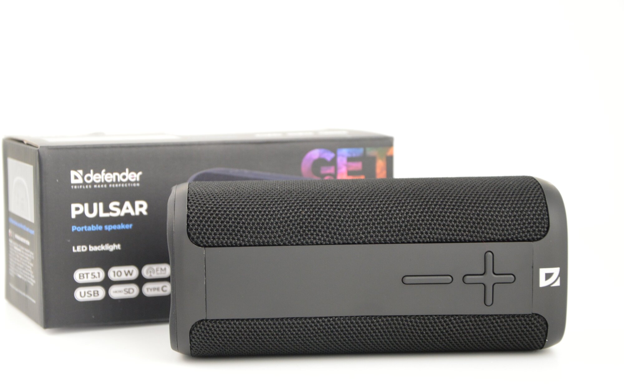 Портативная колонка Defender Pulsar, 10Вт, 1200 мАч, BT,FM, USB, microSD,Type-C, подсветка