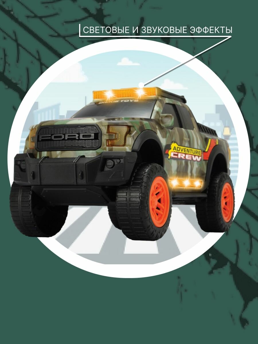 Машина Dickie Toys "Adventure Ford F150 Raptor", инерционная, звуковые и световые эффекты, 33 см