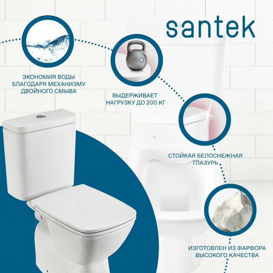 Унитаз-компакт Santek безободковый "Нео", горизонтальный выпуск rimless, 2 режима смыва, сиденье дюропласт, softclose