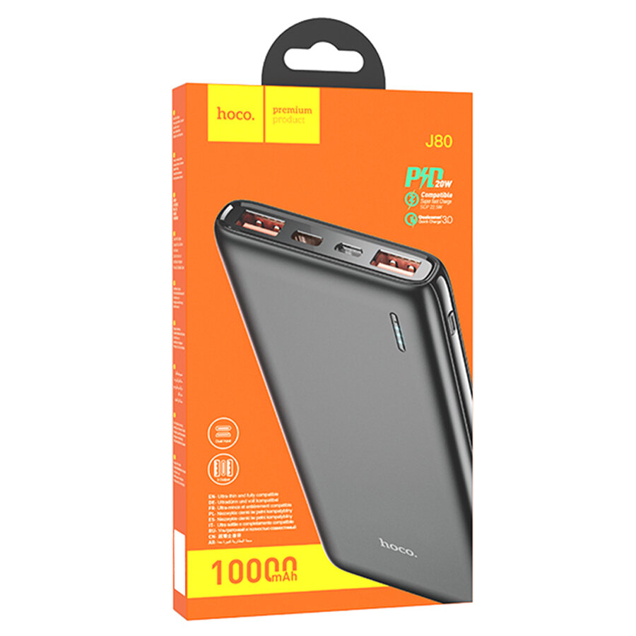 Купить Портативный аккумулятор HOCO J80 Premium 22.5W, 3A, 10000 мА⋅ч, черный