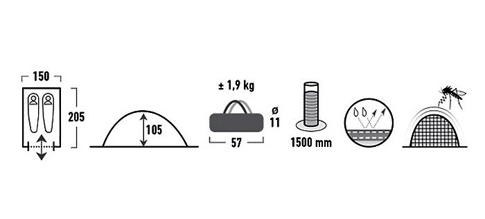 Палатка High Peak Monodome PU синий/серый, 150х205 см, 10159