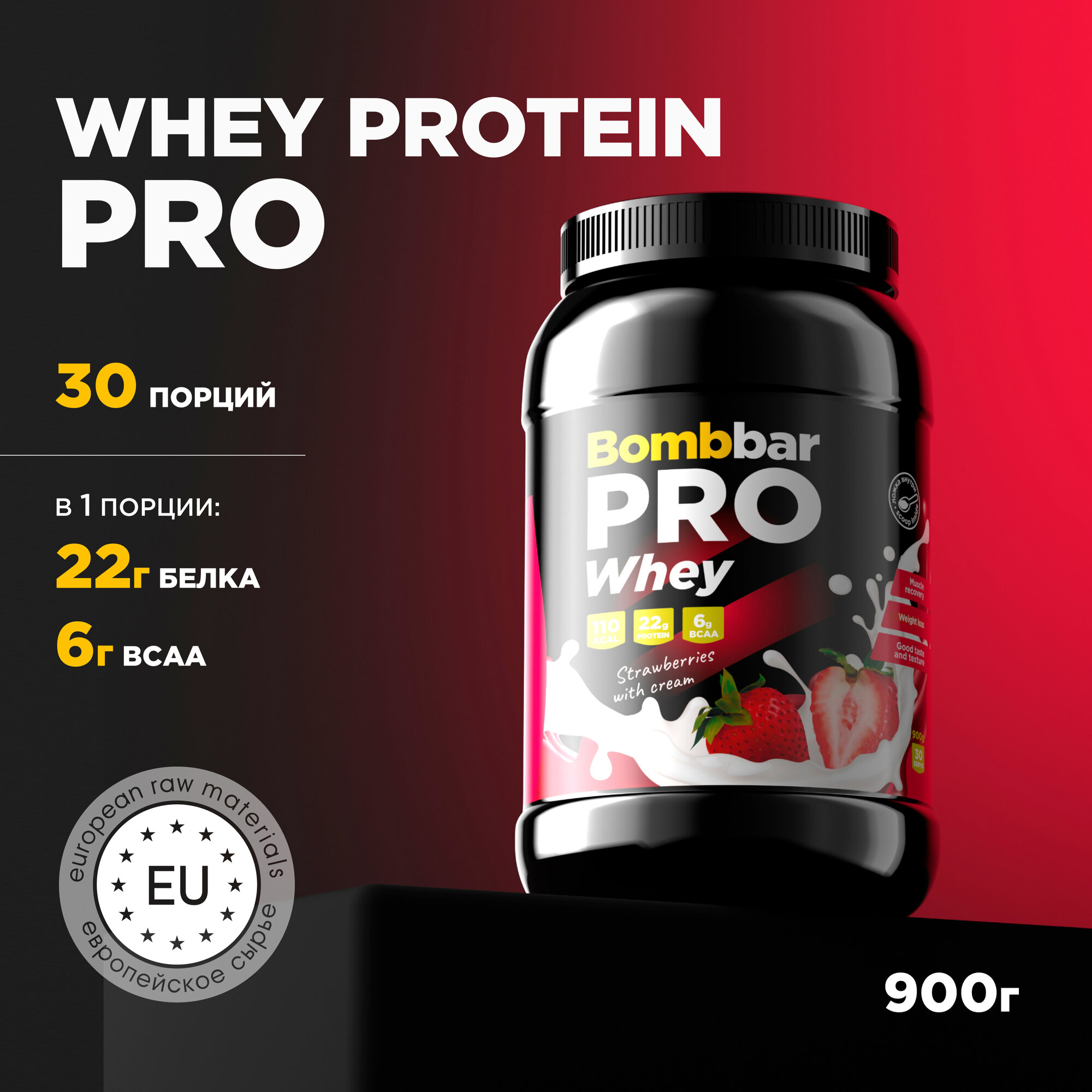 Купить Bombbar, PRO Whey, 900г (Клубника со сливками)