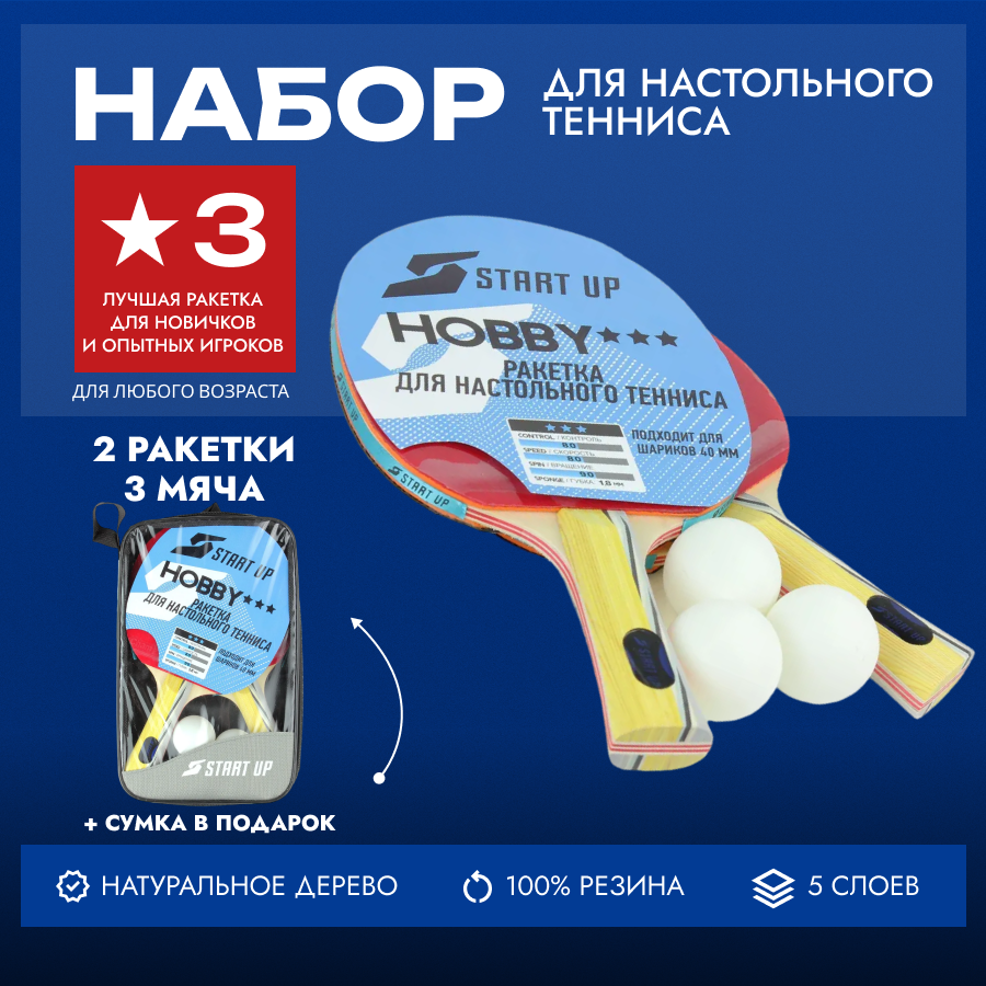 Набор для настольного тенниса Start Up 3 star (2 ракетки, 3 мяча) интересное: