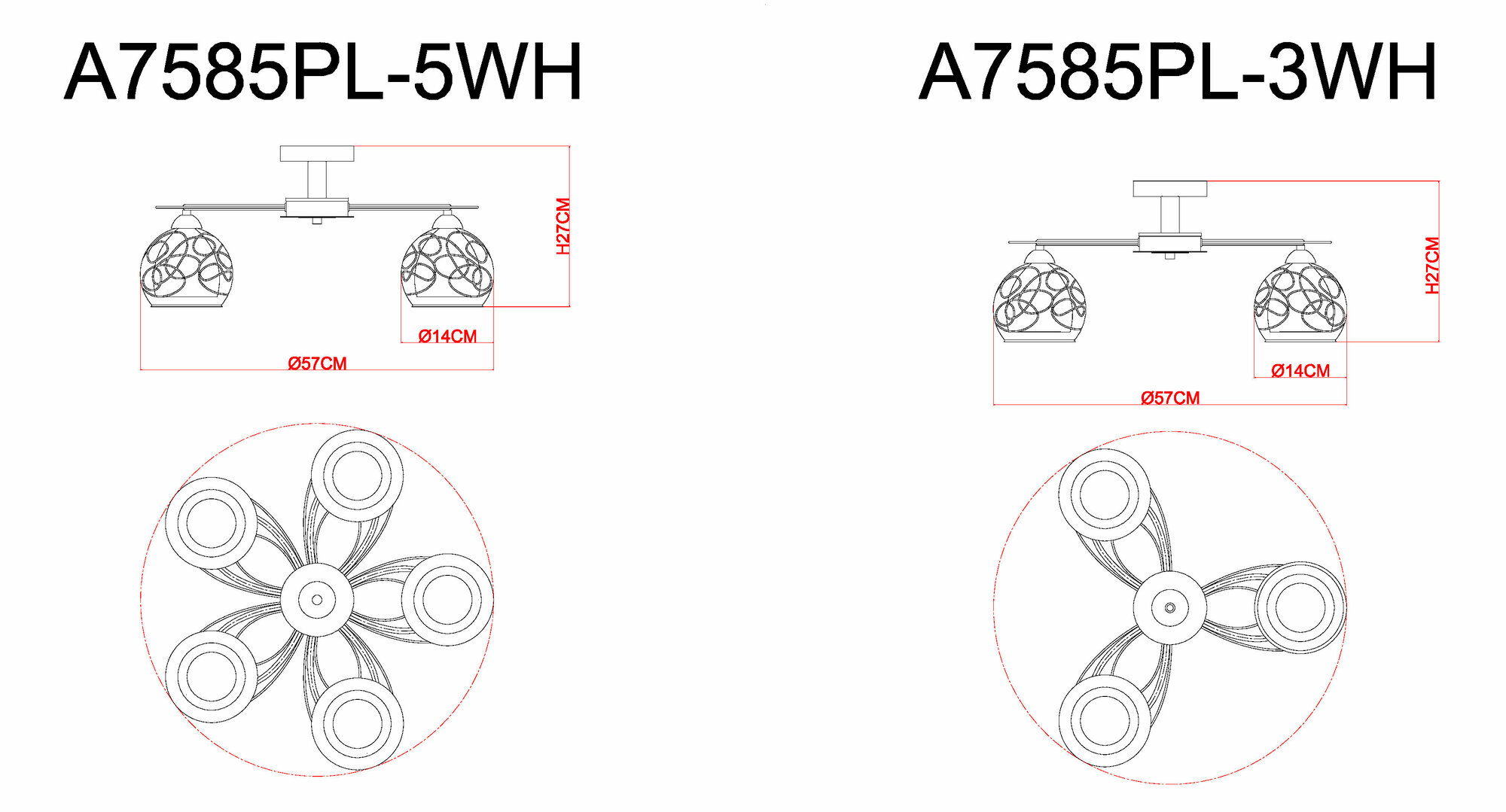 | Форма плафонов | круглая |