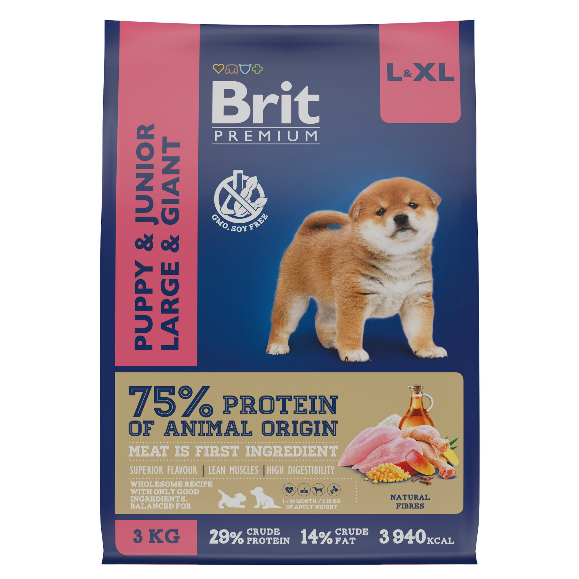 Корм BRIT Premium Dog Puppy and Junior Large and Giant для щенков и молодых собак крупных и гигантских пород, с курицей 3 кг
