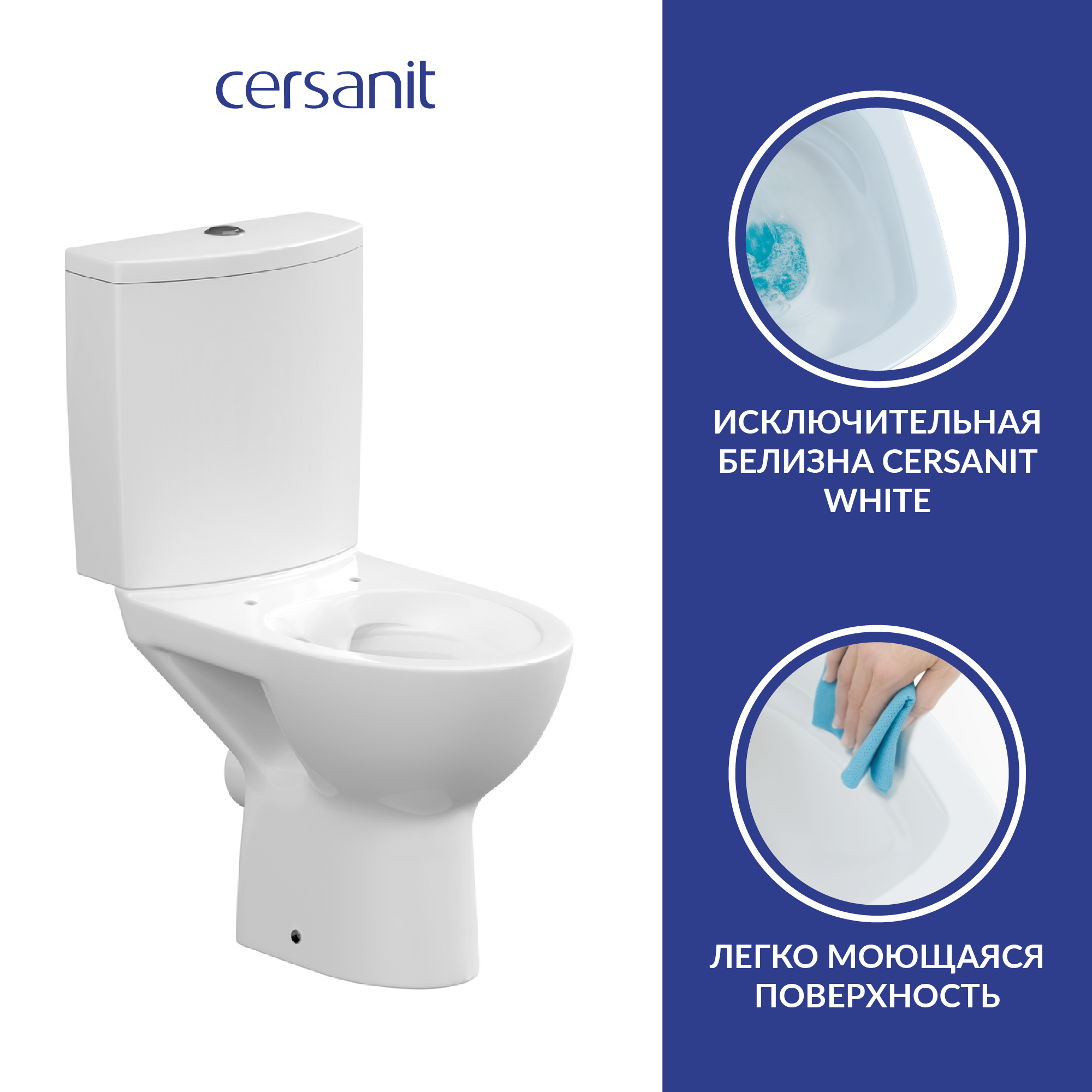 Церсанит Parva Clean унитаз-компакт с горизонтальным выпуском белый / CERSANIT Parva Clean унитаз-компакт безободковый с горизонтальным выпуском, с си