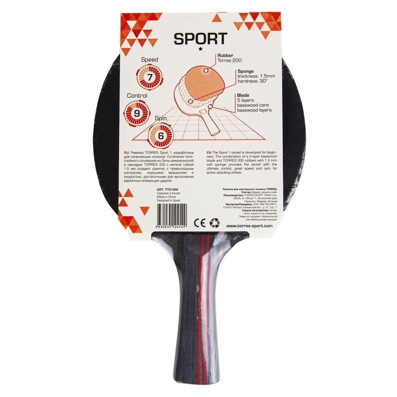 Ракетка для настольного тенниса TORRES Sport 1 × TT21005 интересное: