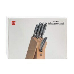 | Комплектация | 4 ножа, ножницы = поставка для хранения |