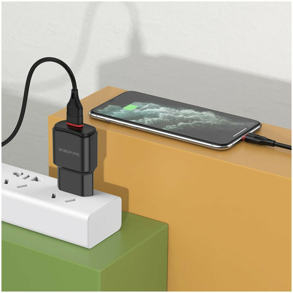 Сетевое зарядное устройство c USB Borofone, BA48A, черное 2.1A