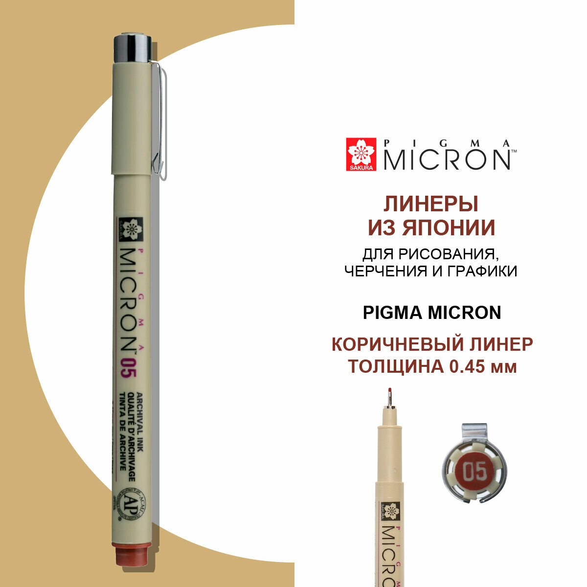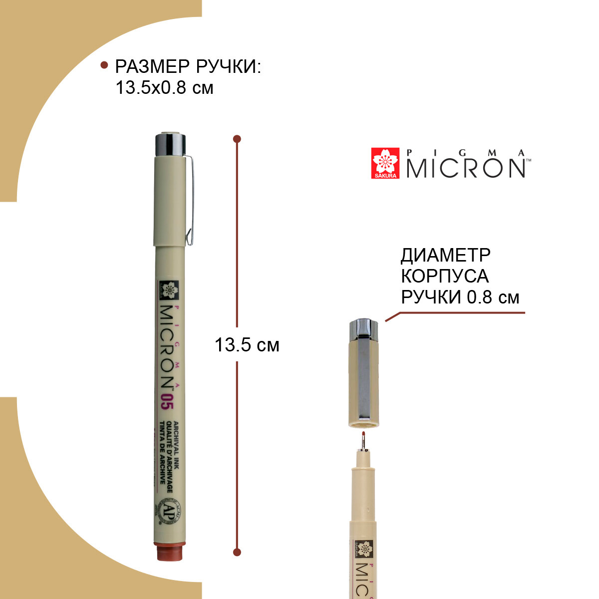 Ручка капиллярная Sakura Pigma Micron 05, толщина линии 0.45 мм, цвет сепия (темно-коричневый)