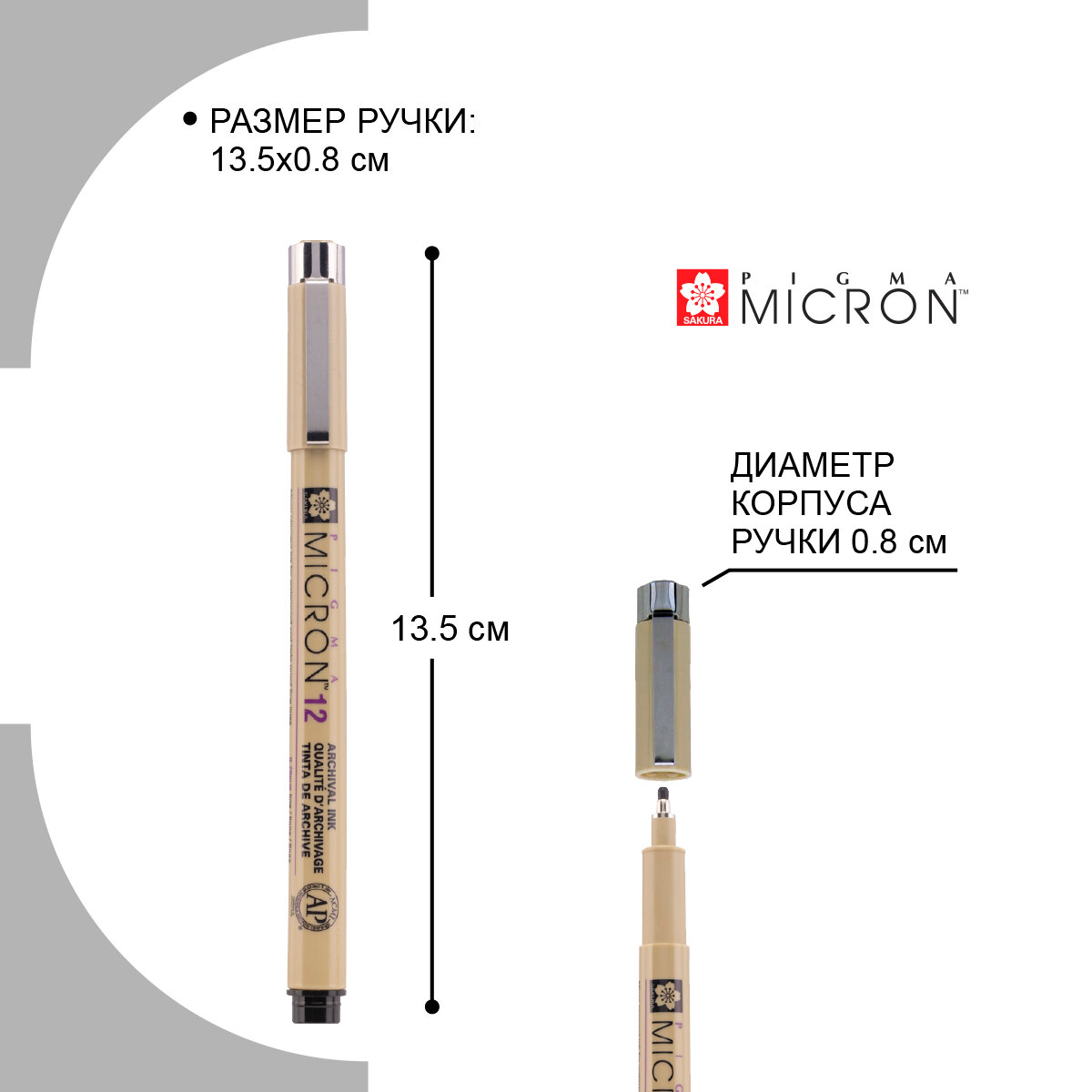Ручка капиллярная Sakura Pigma Micron 0.6 мм, цвет чернил: черный