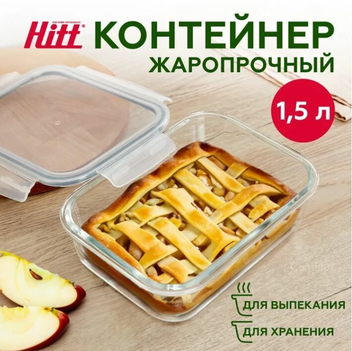 Контейнер герметичный Hitt, стеклянный, жаропрочный 1,5 л.