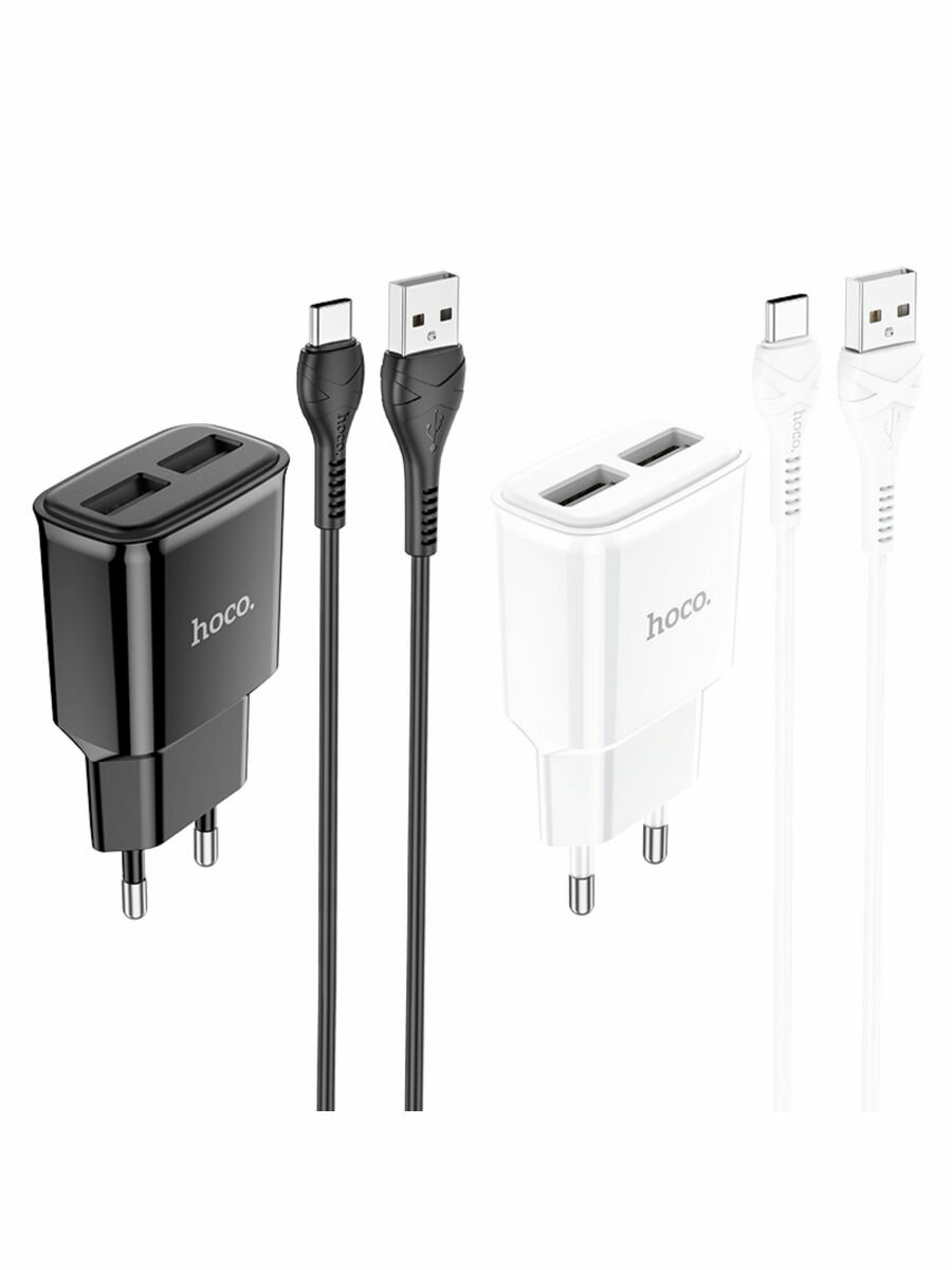 Сетевое зарядное устройство HOCO C88A Star 2xUSB с Кабелем USB - Type-C, 2.4A, 10.8W, черный