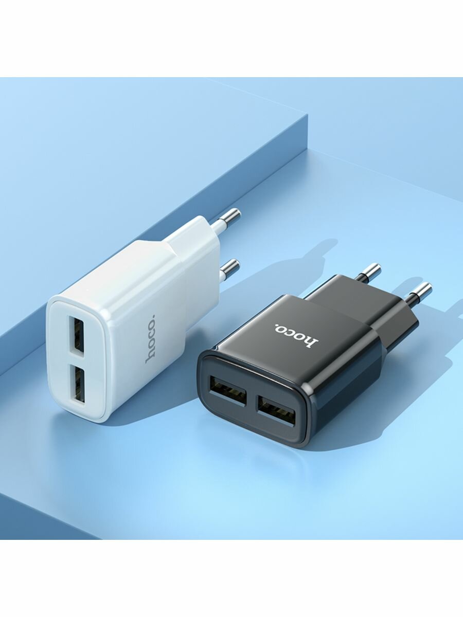 Hoco C88A сетевое зарядное устройство с 2 USB выходами 5В, 2400mAh, белый