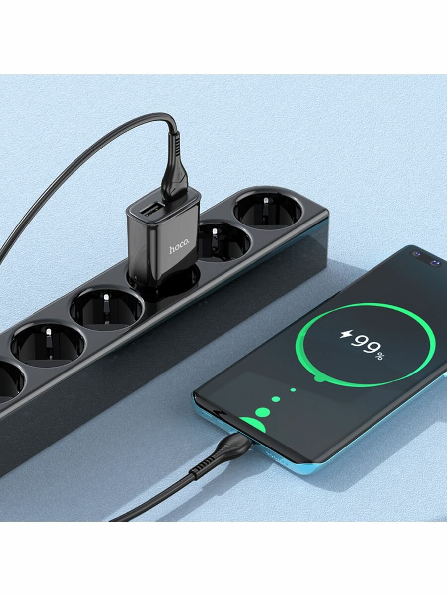 Зарядное устройство для телефона , зарядка для телефона самсунг HOCO C88A Star round (2-USB/2.4A) + Type-C кабель (1м) (черный)