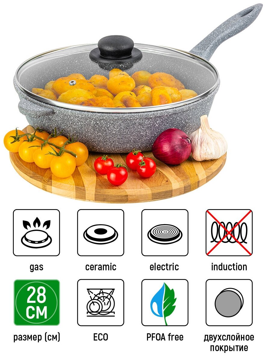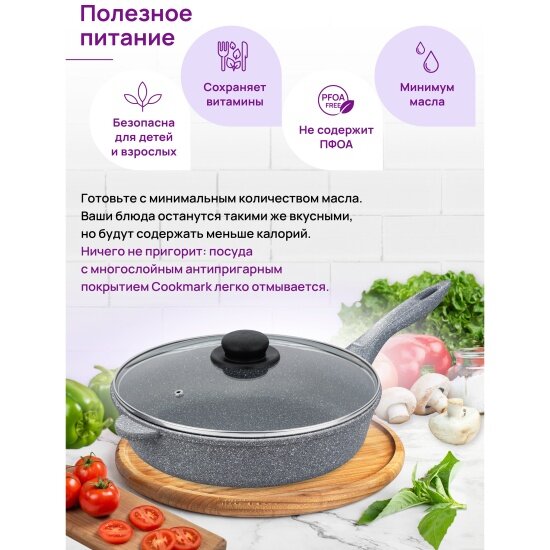 Сковорода глубокая Elan Gallery гармония вкуса Серый мрамор, с крышкой, 28 см интересное:
