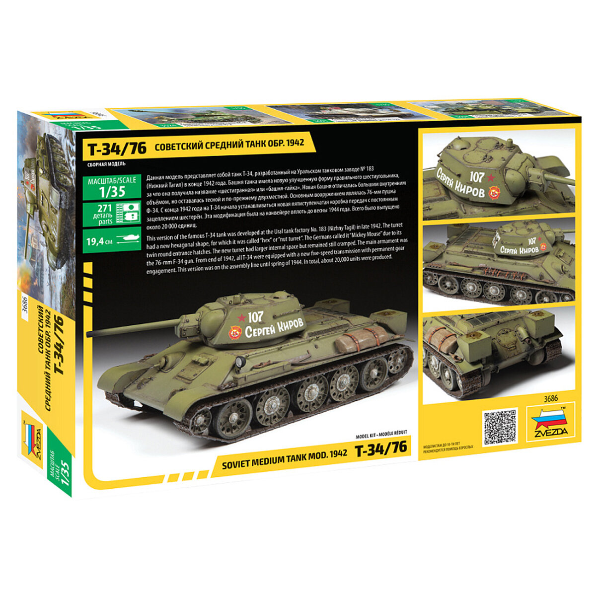 Купить Сборная модель ZVEZDA Советский средний танк Т-34/76 (обр. 1942 г.) 3686 1:35