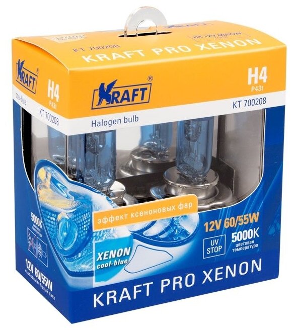 KRAFT KT700208 Лампа 12 В H4 60/55 Вт P43t Pro Xenon 2 шт. блистер Kraft