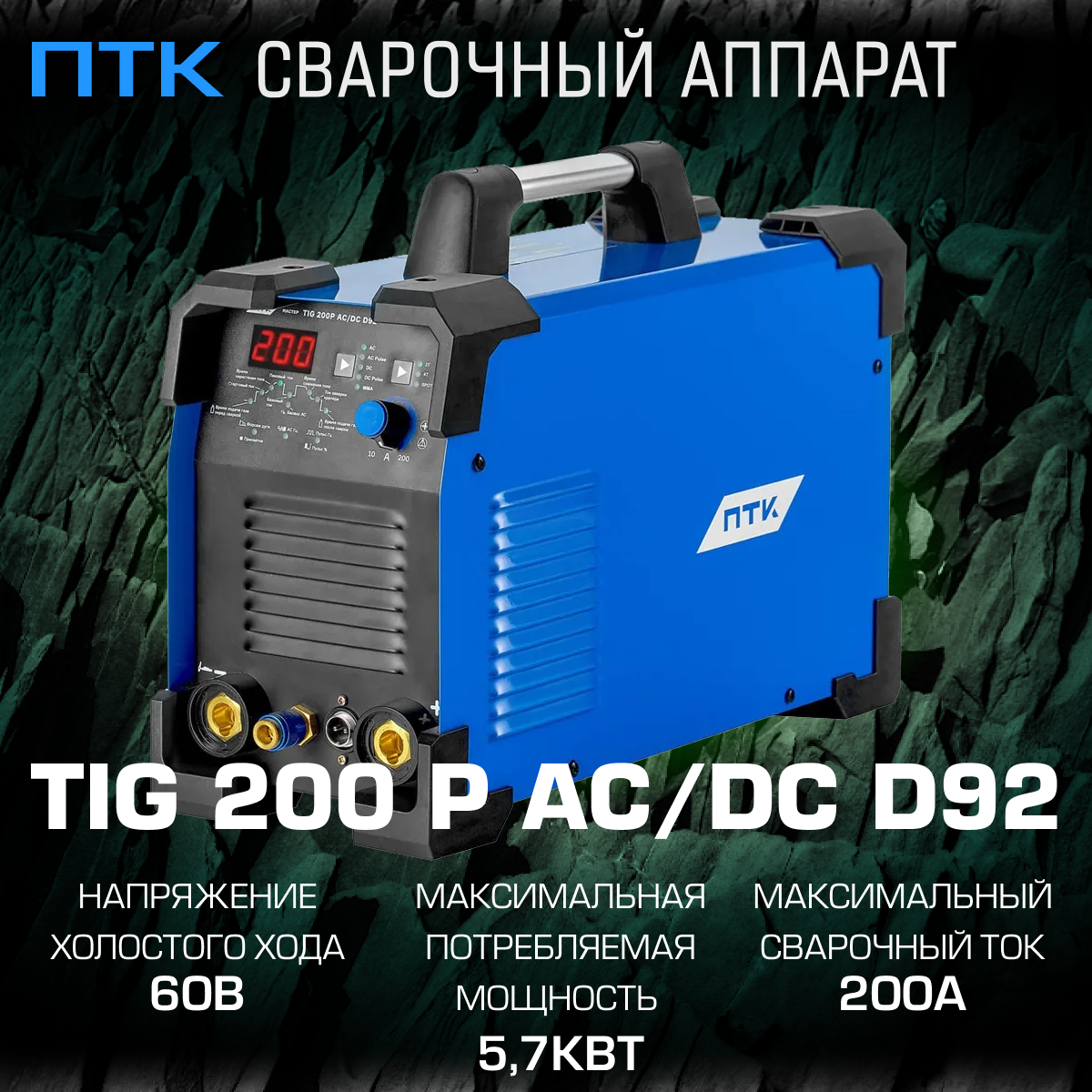 Сварочный аппарат инверторного типа ПТК мастер TIG 200 P AC/DC D92