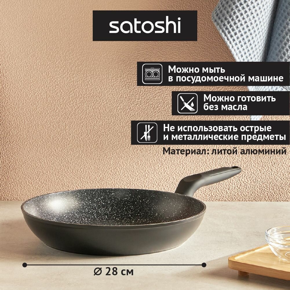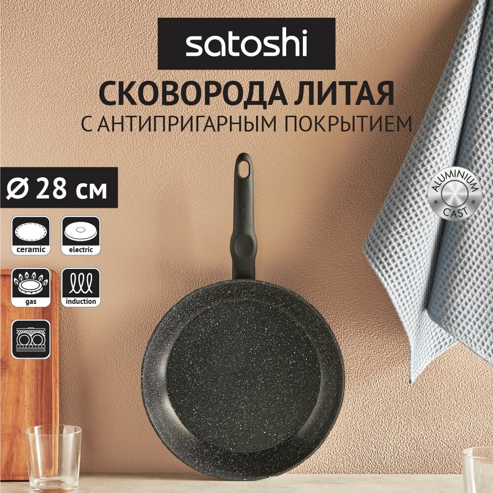 Сковорода Satoshi Стоун 28 см с антипригарным покрытием, индукция, без крышки, литой алюминий