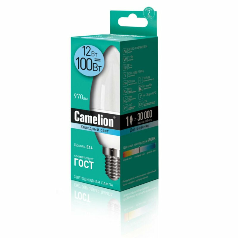 (Эл.лампа светодиодная 12Вт 220В), CAMELION LED12-C35/845/E14 (1 шт.)