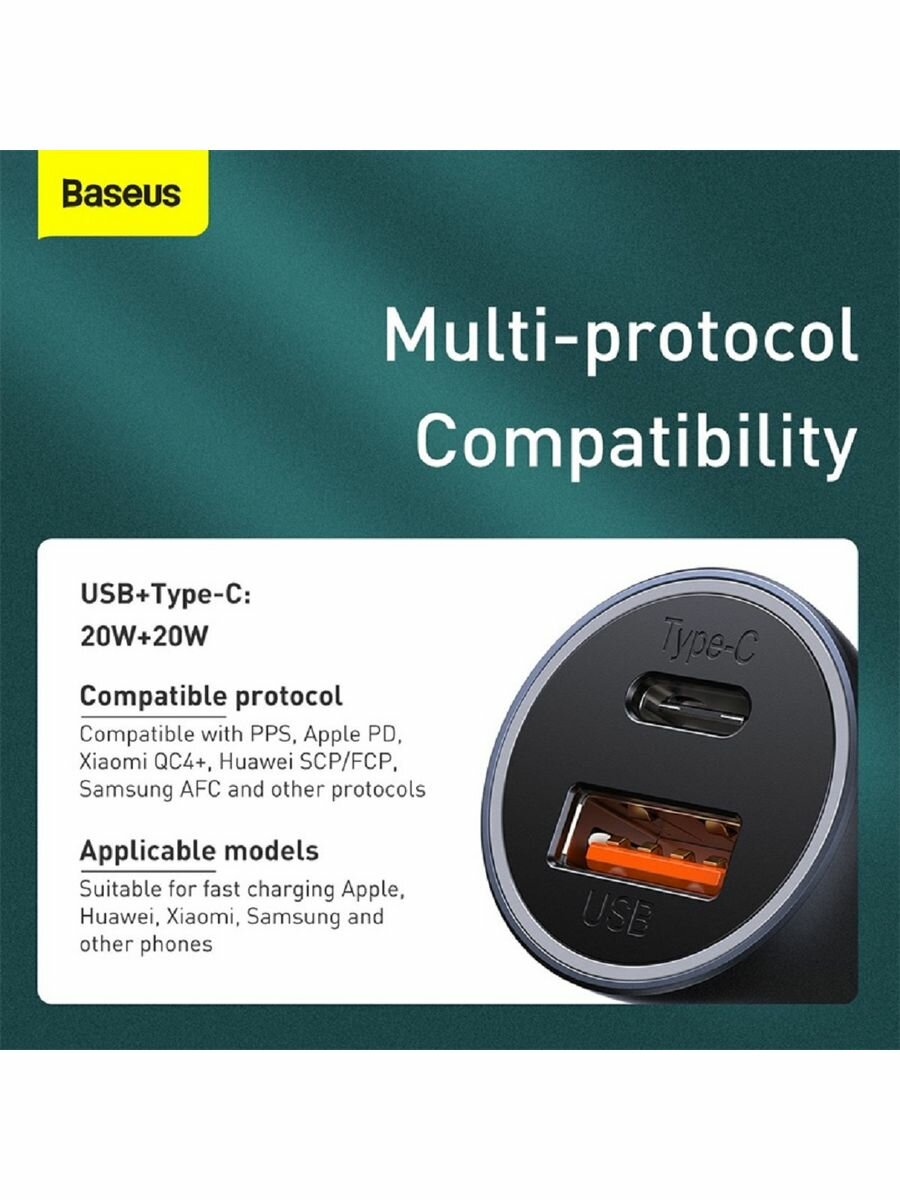 Автомобильная зарядка Baseus Golden Contactor Pro Dual Quick Charger Car Charger USB+USB-C 40W (CCJD-03,CCJD-0G) (dark gray)