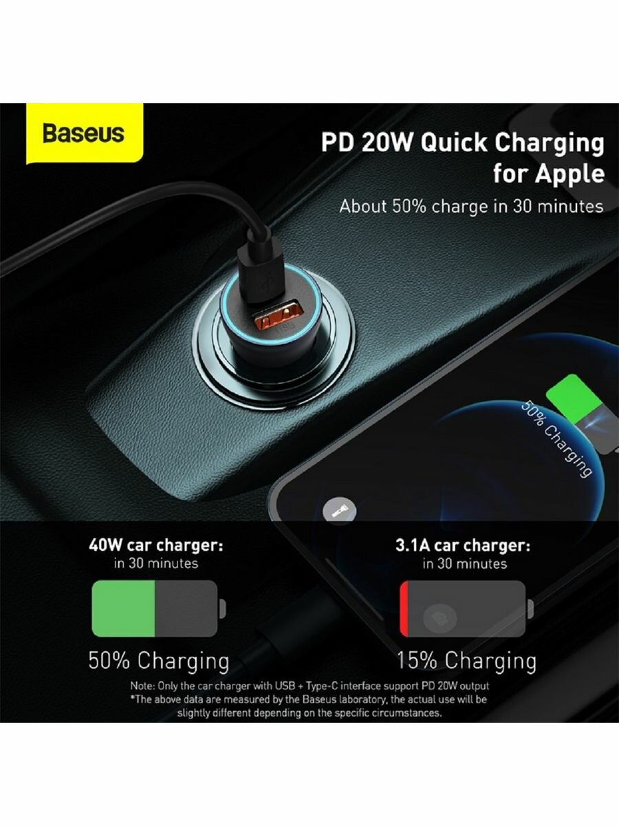 Автомобильная зарядка АЗУ с подсветкой 40W Baseus USB+USB-C (CCJD-0G) Темно-серый