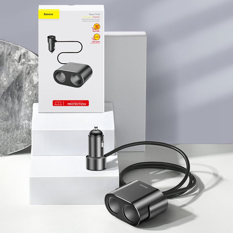 Автомобильное заряд. устр. + разв. прикурив. Baseus 2USB 3.1A (CRDYQ-01) черное