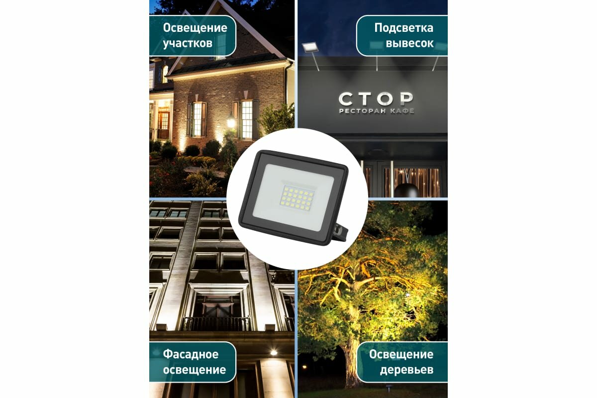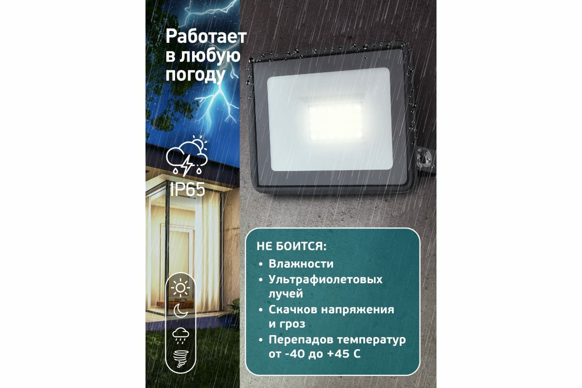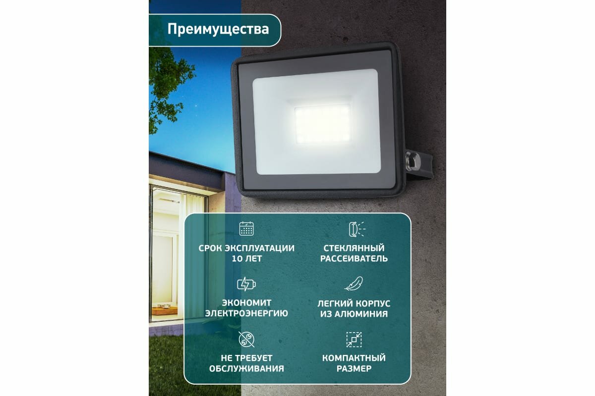 Фонарь эра прожектор светодиодный lpr-023-0-40k-020 яркий холодный 20вт/220в