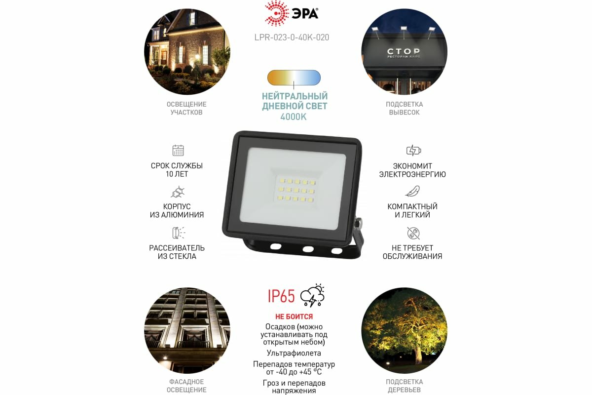СохранитьУличный светодиодный прожектор ЭРА LPR-023-0-40K-020 интересное:
