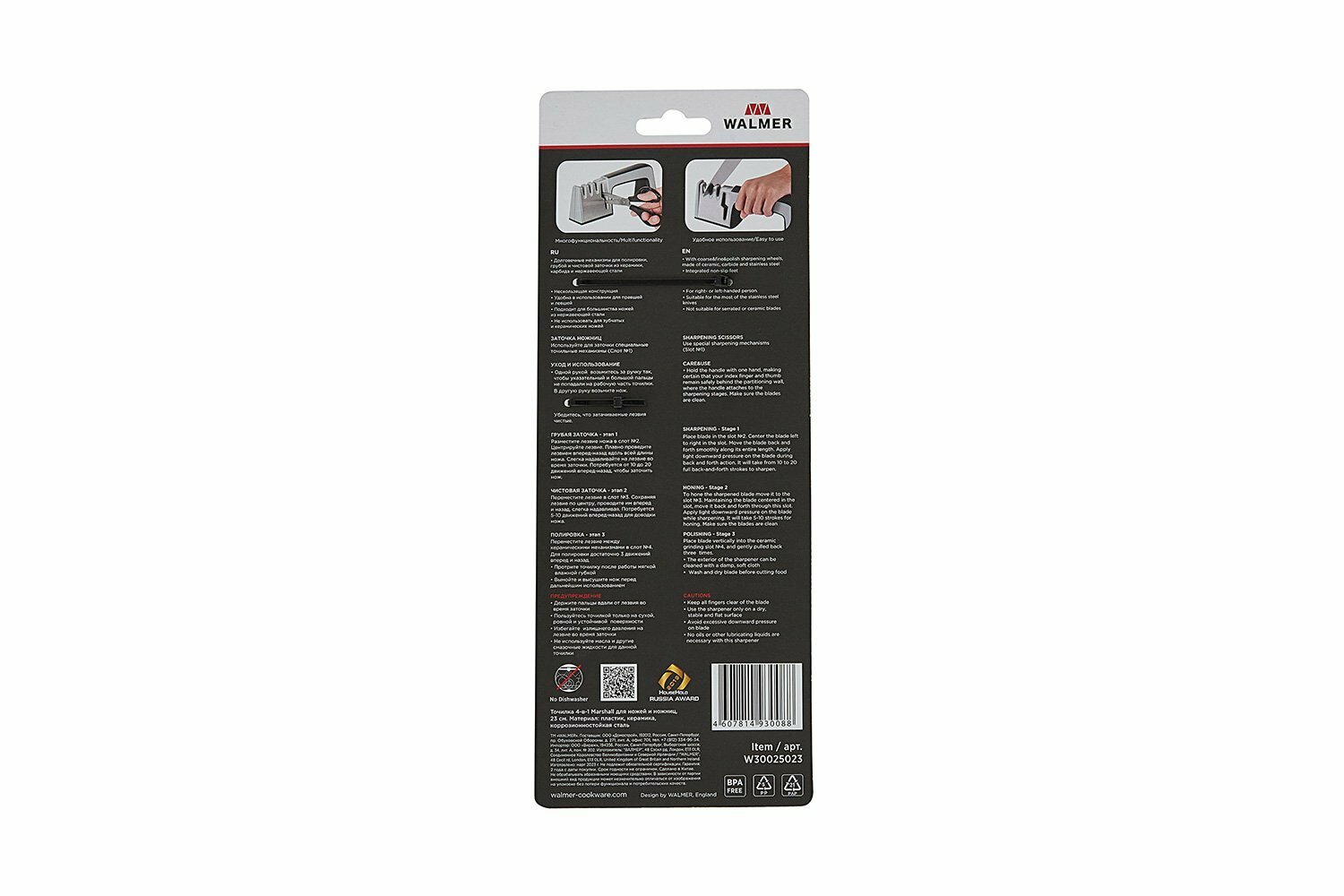 Точилка 4 в 1 WALMER Marshall для ножей и ножниц, 23см (W30025023)