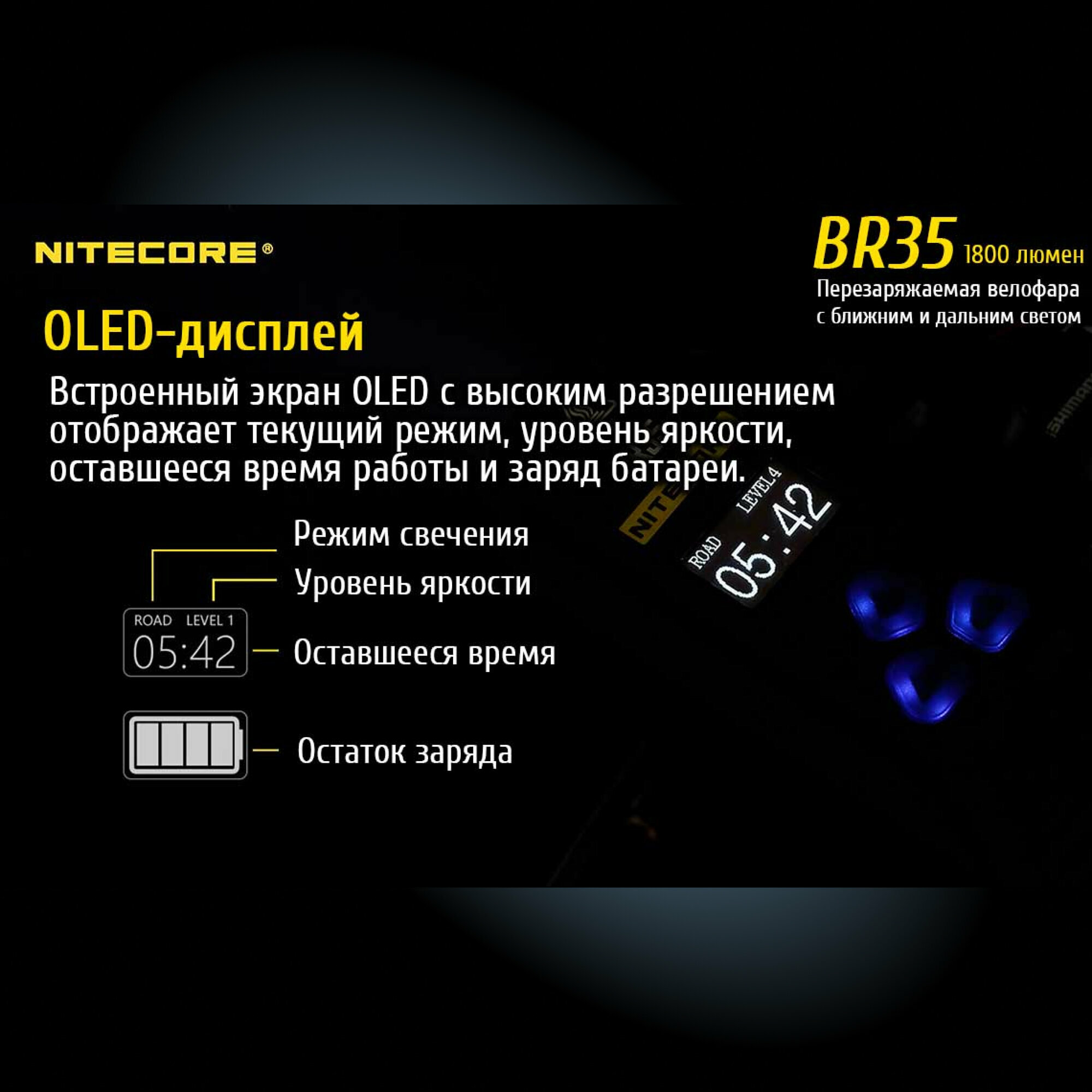Велосипедный фонарь NITECORE BR35 (BR35) интересное: