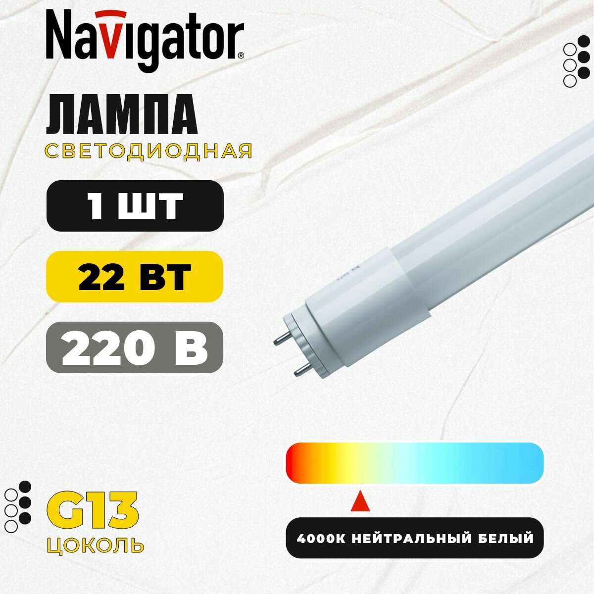 Светодиодная лампа Navigator 94 391 NLL-T8-22-230-4K-G13 22Вт G13 2000лм 170-260В 94391