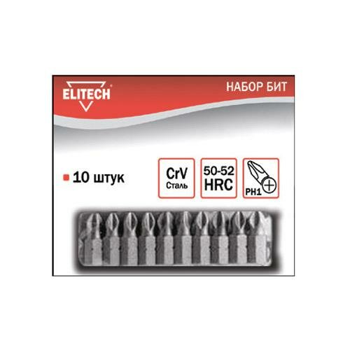 Набор бит Elitech 50мм 10 штук пластиковый бокс CrV PH1