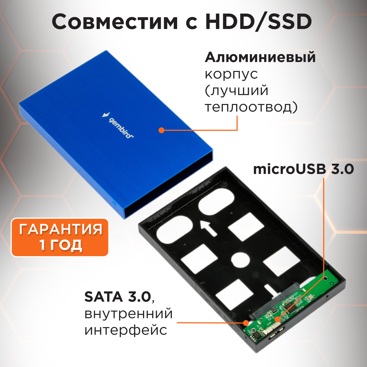 Корпус для HDD 2.5" SATA-USB3.0 Gembird EE2-U3S-56, синий металлик