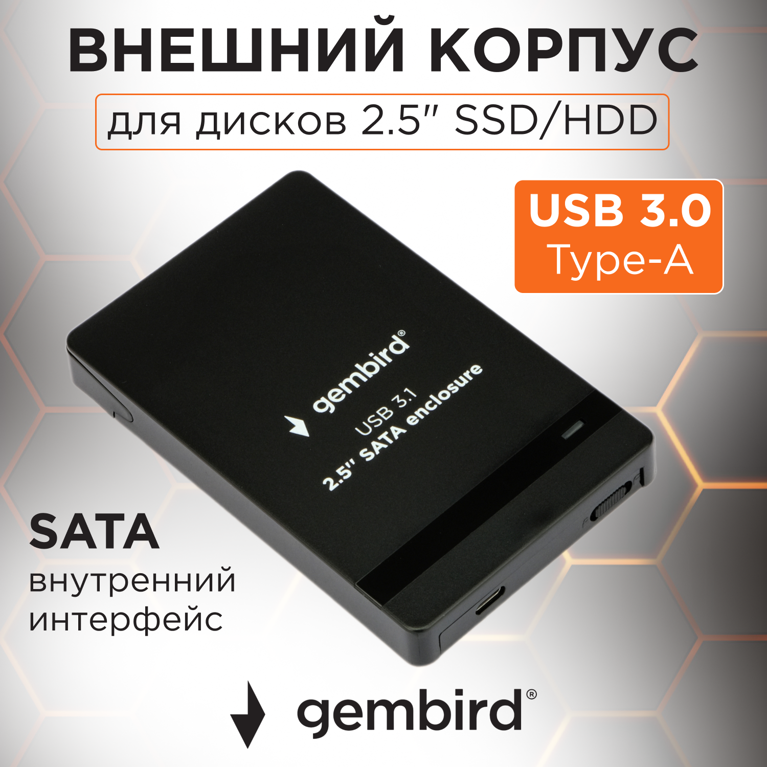 Внешний корпус для HDD 2.5" Gembird EE2-U31S-2, пластик, чёрный, USB Type-c
