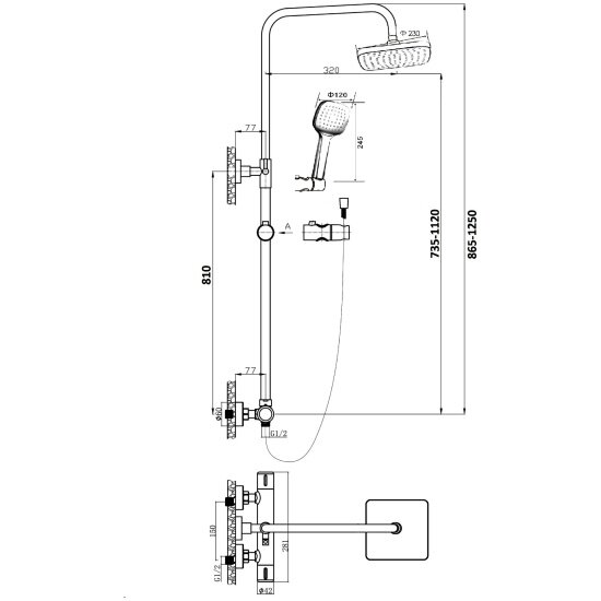 | Комплектация | верхний душ / шланг для душа / термостат с изливом / душевая лейка / душевая штанга / держатель лейки / держатель штанги / эксцентрики / инструкция |