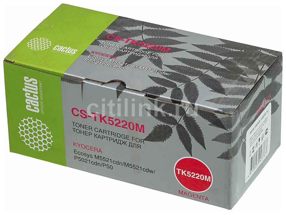 Тонер-картридж CACTUS (CS-TK5220M) для KYOCERA Ecosys P5021cdn/cdw/M5521cdn, пурпур, ресурс 1200 стр