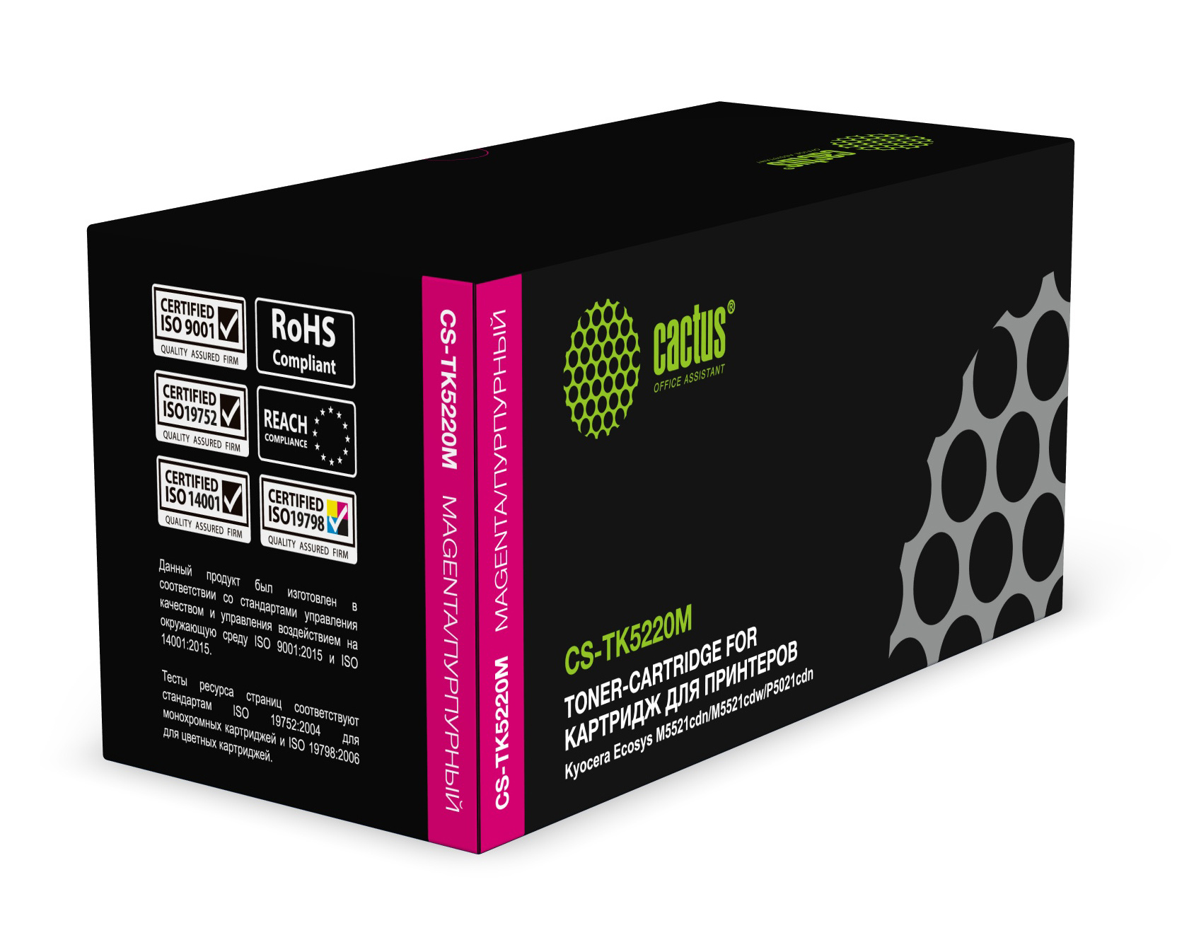 Тонер-картридж CACTUS (CS-TK5220M) для KYOCERA Ecosys P5021cdn/cdw/M5521cdn, пурпур, ресурс 1200 стр. Комплект : 1 шт