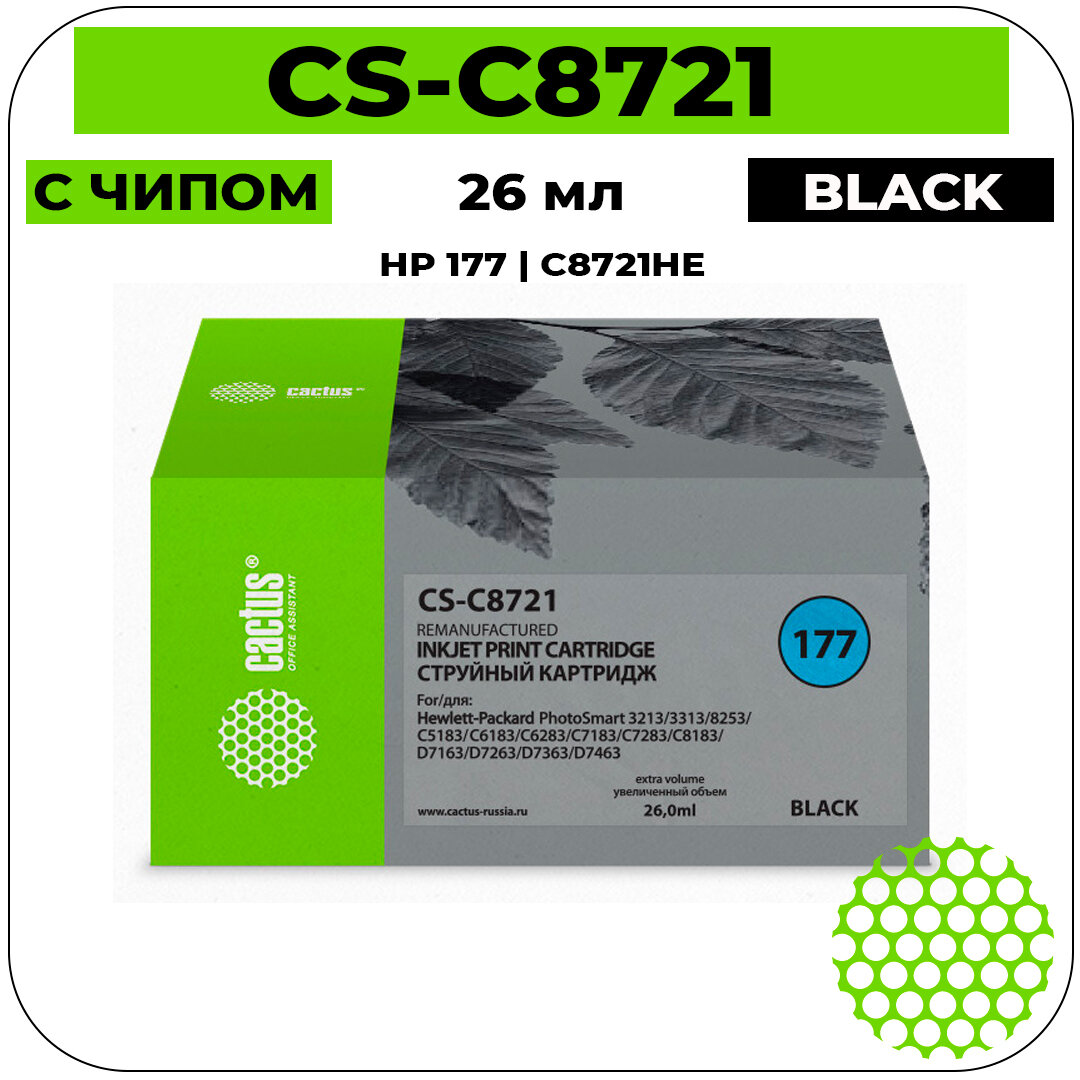 Картридж струйный Cactus CS-C8721 №177 черный (26мл) для HP PS 3213/3313/8253/C5183/C6183/C6283/C7183/C7283/C8183/D7163/D7263/D7363/D7463