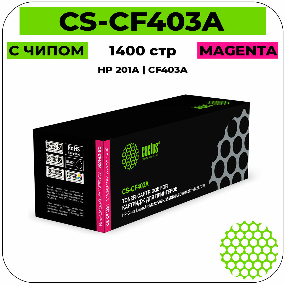Картридж лазерный Cactus Cs-cf403a пурпурный (1400стр.) для HP CLJ M252/252N/252DN/252DW/M277n/M277D