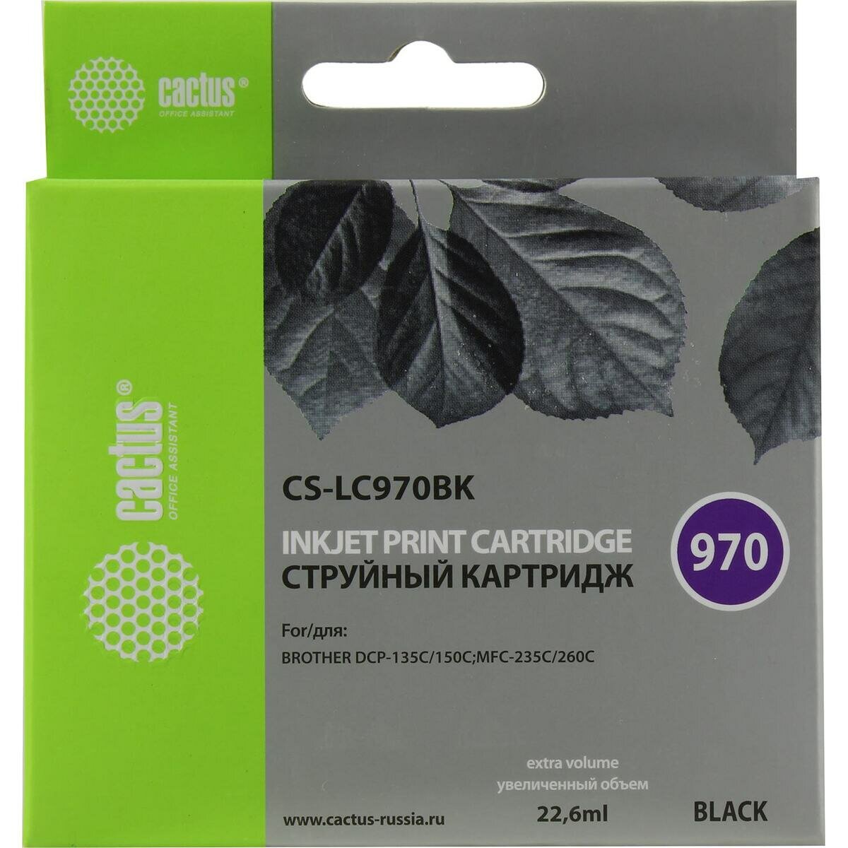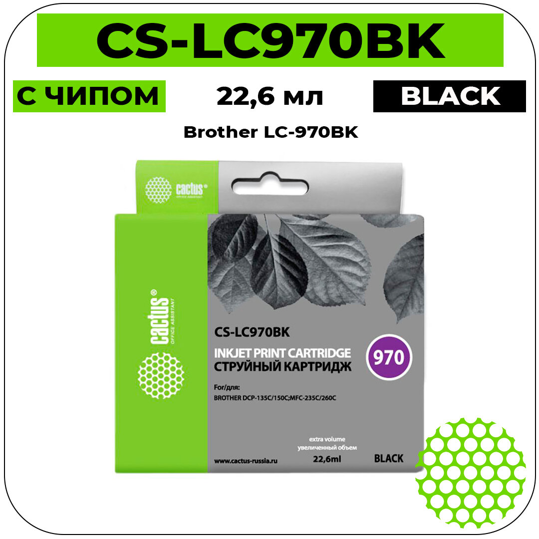 Картридж Cactus CS-LC970BK струйный картридж (Brother LC-970BK) 22,6 мл, черный