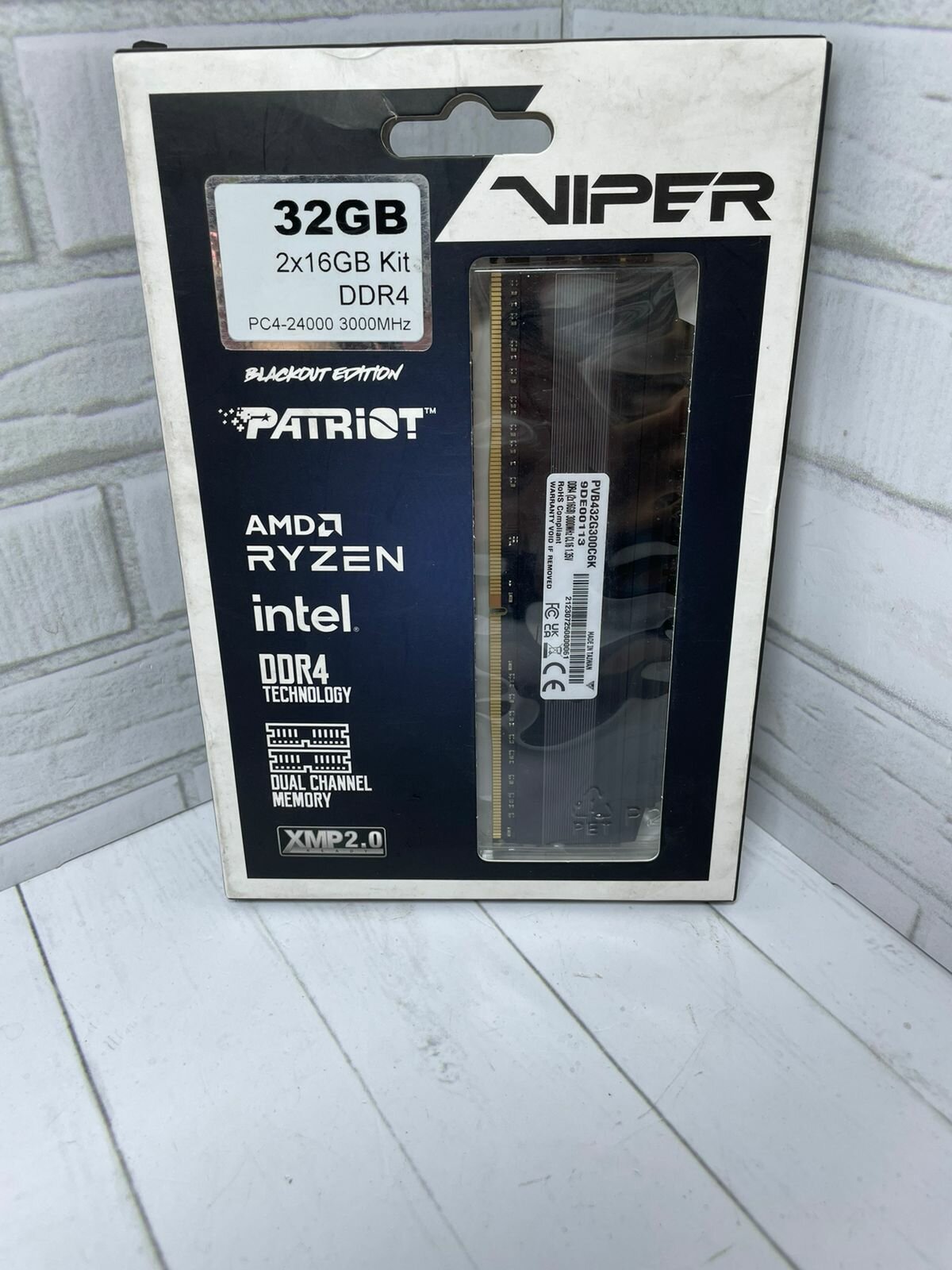 Оперативная память Patriot Memory VIPER 4 BLACKOUT 32 ГБ (16 ГБ x 2) DDR4 3000 МГц DIMM CL16 PVB432G300C6K