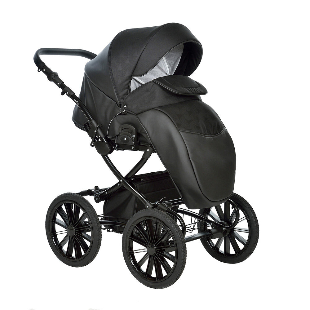 Универсальная коляска Indigo Porto Classic 14" (2 в 1), (08 черная кожа+черный узор)