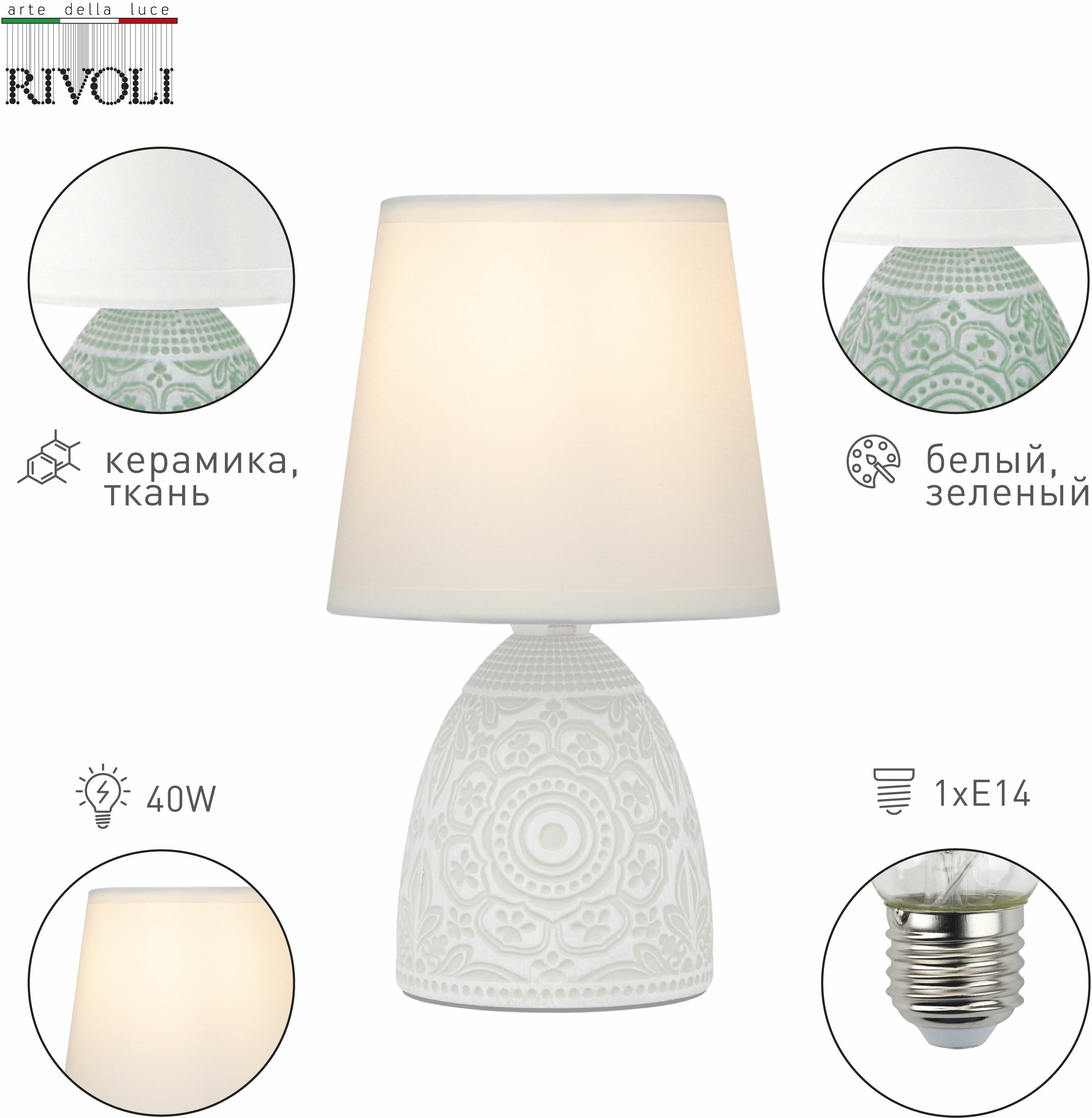 Настольная лампа Rivoli Debora D7045-502 1 * Е14 40 Вт керамика